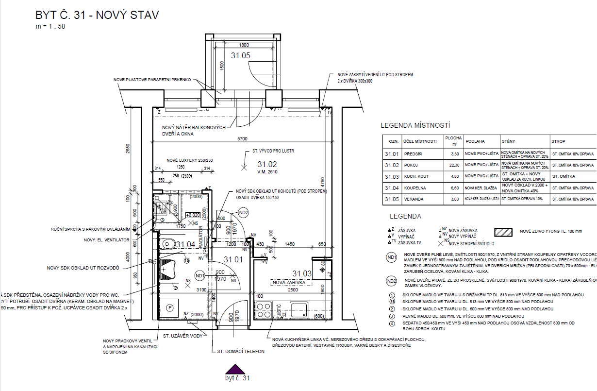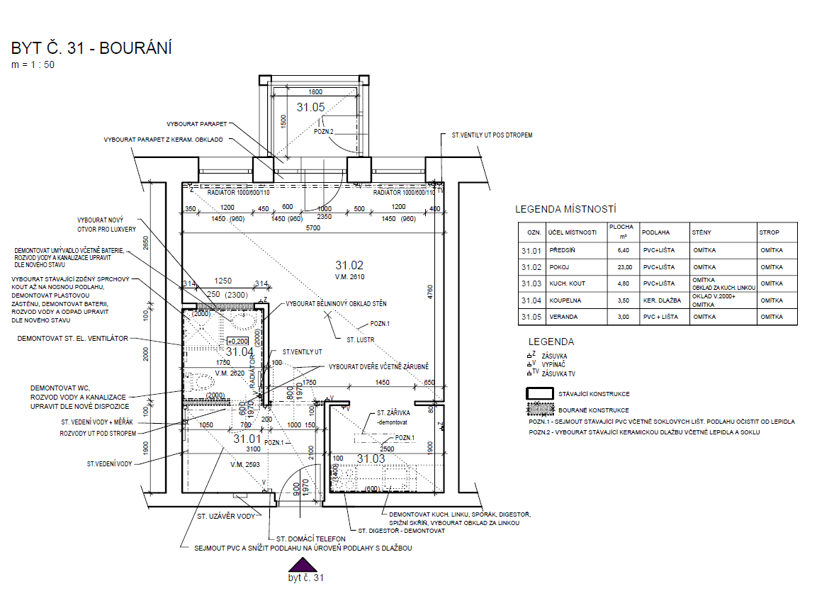 Stavební úpravy bytu č. 31, U Havírny 921, Kutná Hora
